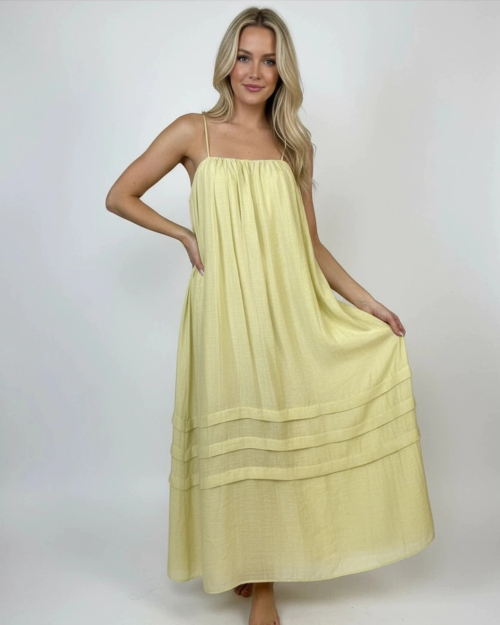 Descubrí nuestro vestido confeccionado en sedosa tela arrugada, una prenda que combina textura y sofisticación para que te sientas única en cualquier ocasión. Su diseño incluye delicadas alforzas en la base, que aportan un volumen sutil y un movimiento fluido, ideal para destacar tu estilo con un toque femenino y moderno.